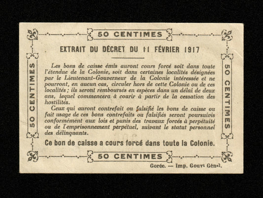 Colonie du Senegal - 50 Centimes (0,50 Francs) 1917 Pick 1c SUP+ / XF+
