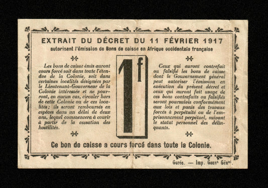 Colonie du Senegal - 1 Franc 1917 Pick 2c TTB / VF