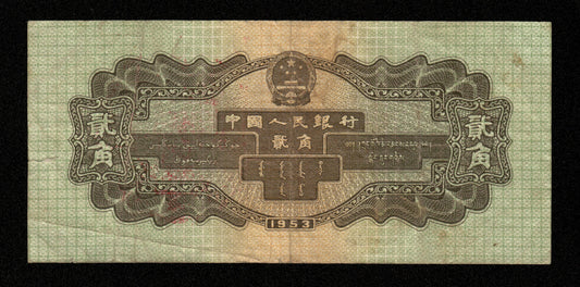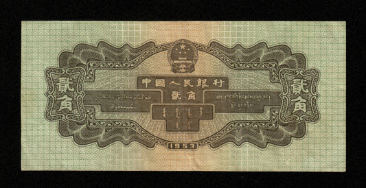 CHINE - Peoples Bank of China - 2 Jiao 1953 Pick 864 TTB / VF