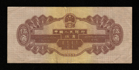 CHINE - Peoples Bank of China - 5 Jiao 1953 Pick 865 B / Good