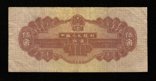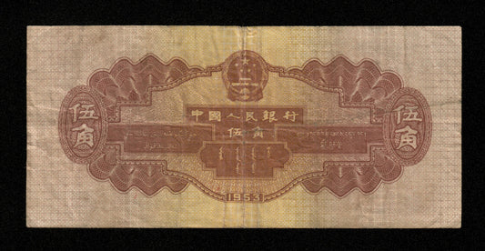 CHINE - Peoples Bank of China - 5 Jiao 1953 Pick 865 TB / Fine