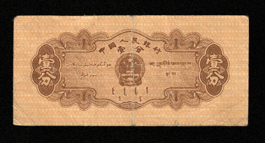 CHINE - Peoples Bank of China - 1 Fen 1953 Pick 860a TB / Fine