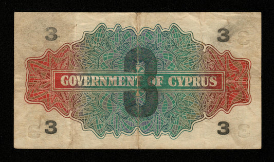 CHYPRE - CYPRUS - 3 Piastres 1943 (on 1 Shilling 1941) Pick 26 TB / Fine