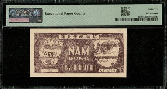 VIETNAM - VIET NAM - 5 Dong (Dông) (1948) Pick 17a NEUF / PMG Gem Unc 65 EPQ