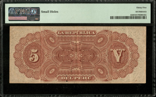 PEROU - Republica del Peru, 5 Soles 1879 P.4 TTB / PMG 35