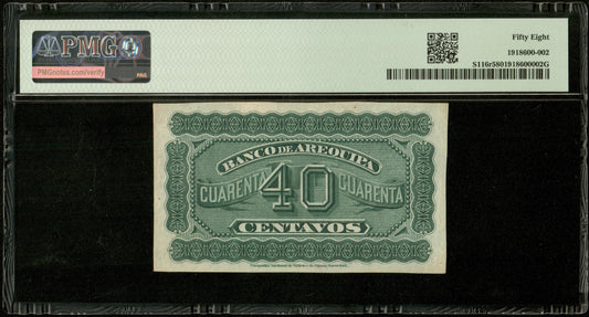 PEROU - PERU - Banco de Arequipa, 40 Centavos (1870s) Pick S116r pr.NEUF / PMG Choice About Unc 58