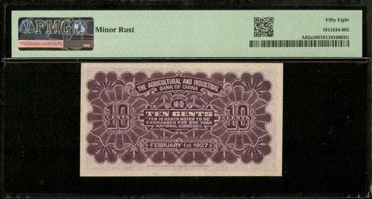 CHINE - CHINA - Agricultural and Industrial Bank, 10 Cents 1927 Peking P.A92a pr.NEUF / PMG Choice AU 58