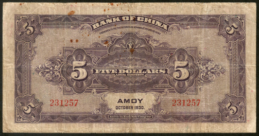 CHINE - CHINA - 5 Dollars 1930 Amoy P.68 TB / Fine