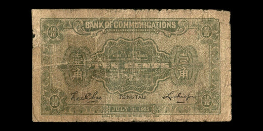 CHINE - CHINA - Bank of Communication - 10 Cents 1925 Tsingtau P.138c B / Good