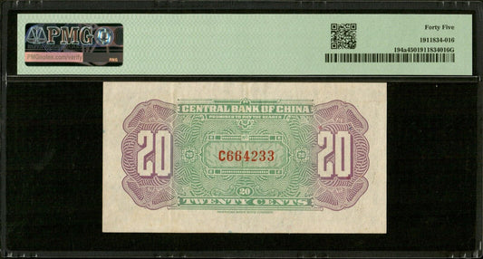 CHINE - CHINA - 20 Cents (1924) P.194a SUP / PMG Choice XF 45