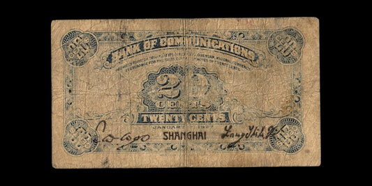 CHINE - CHINA - Bank of Communication - 20 Cent 1927 Shanghai P.143b B / Good