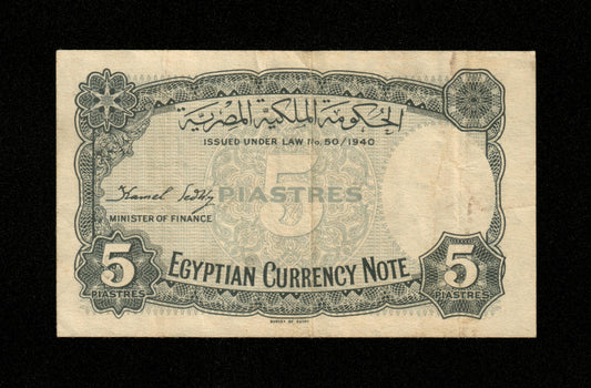 ÉGYPTE - EGYPT - 5 Piastres 1940 Pick 164a TTB / VF