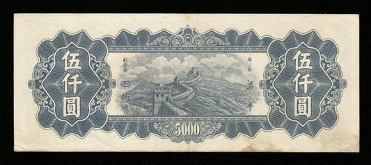CHINE - Central Bank of China, 5000 Yuan 1948 Pick 385A TTB / VF