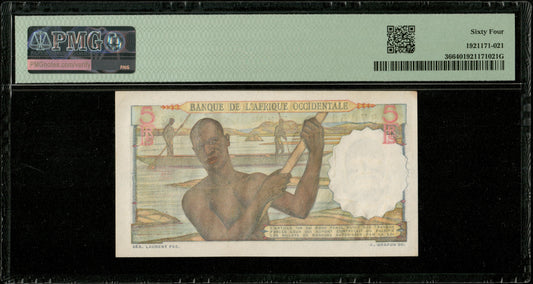 FRENCH WEST AFRICA, Afrique Occidentale - 5 Francs 1948 Pick 36 PMG Choice Unc 64