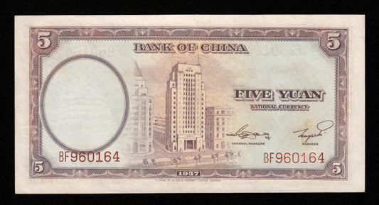 CHINE - Bank of China, 5 Yuan 1937 P.80 pr.NEUF / UNC-