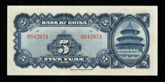 CHINE - Bank of China, 5 Yuan 1940 P.84 pr.NEUF / UNC-