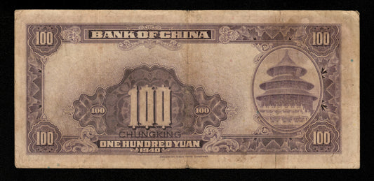 CHINE - Bank of China, 100 Yuan Chungking 1940 P.88b TB / Fine
