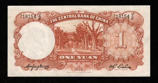 CHINE - Central Bank of China, 1 Yuan 1936 P.212a SUP+ / XF+