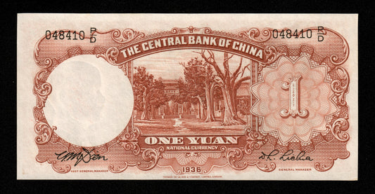 CHINE - Central Bank of China, 1 Yuan 1936 P.212c pr.NEUF / UNC-