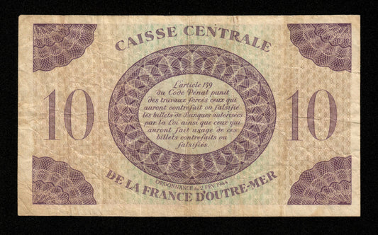 GUADELOUPE - 10 Francs 1944 P.27a TB / Fine