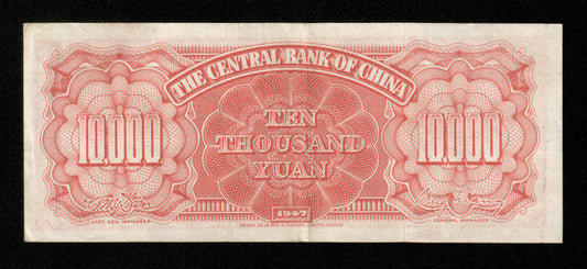 CHINE - Central Bank of China, 10000 Yuan 1947 P.317 TTB / VF