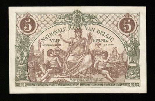 BELGIQUE - BELGIUM - 5 Francs 1919 P.75b SUP / XF