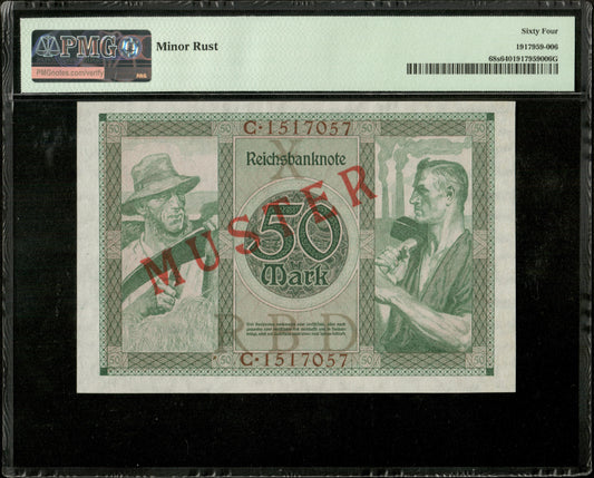 ALLEMAGNE - GERMANY - 50 Mark Specimen (Muster) 1920 P.68s pr.NEUF / PMG 64 TOP POP !