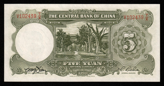CHINE - Central Bank of China, 5 Yuan 1936 P.213c NEUF/ UNC