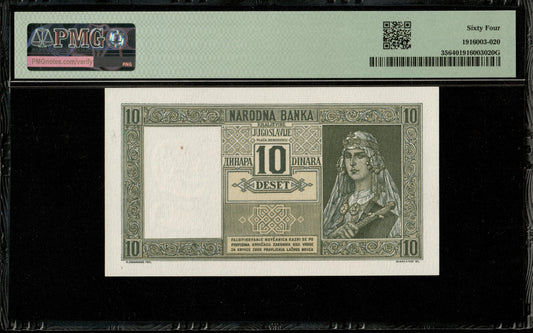 YOUGOSLAVIE - YUGOSLAVIA - 10 Dinara 1939 P.35 NEUF / PMG 64