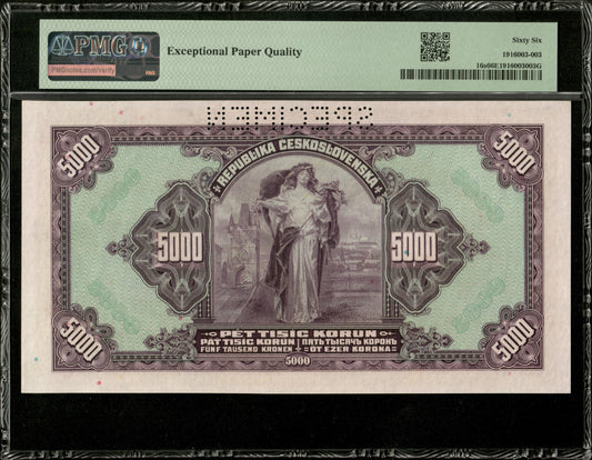 BOHÈME ET MORAVIE - BOHEMIA AND MORAVIA - 5000 Korun Specimen 1920 (1943) P.16s PMG 66 EPQ