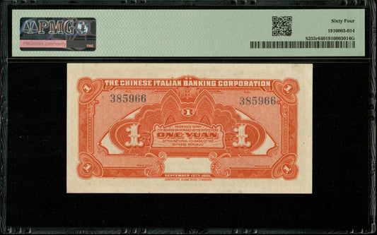 CHINE - CHINA - Chinese Italian Banking Corporation, 1 Yuan 1921 P.S253 pr.NEUF / PMG 64