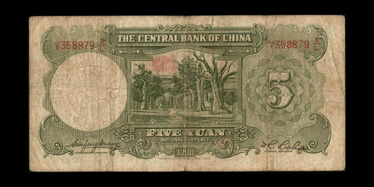 CHINE - Central Bank of China, 5 Yuan 1936 P.213a B / Good