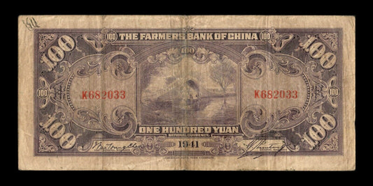 CHINE - Farmers Bank of China, 100 Yuan 1941 P.477b TB / Fine