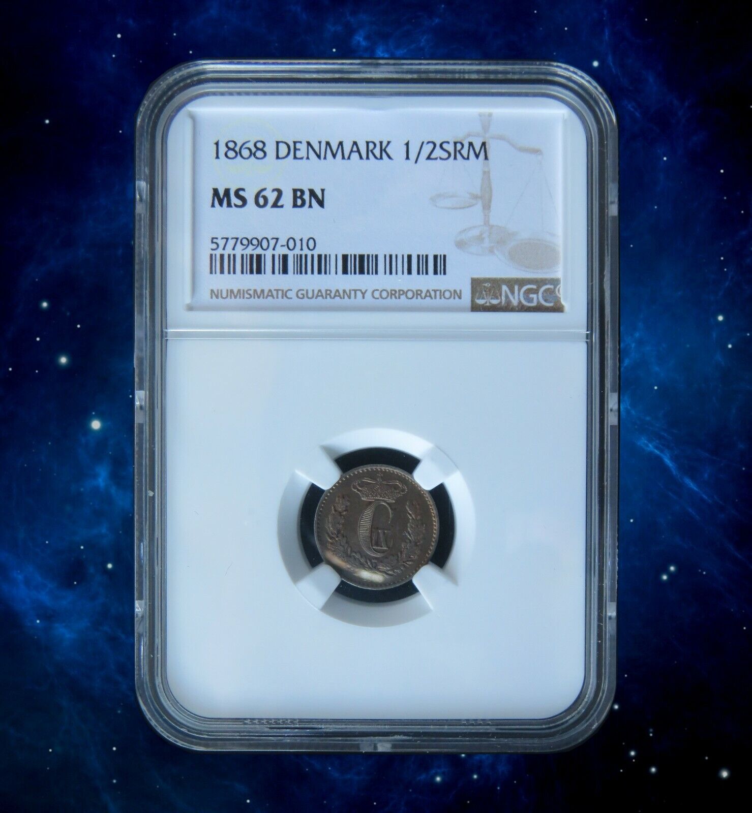 DANEMARK - DENMARK - 1/2 Skilling rigsmont 1868 NGC MS62BN KM.776