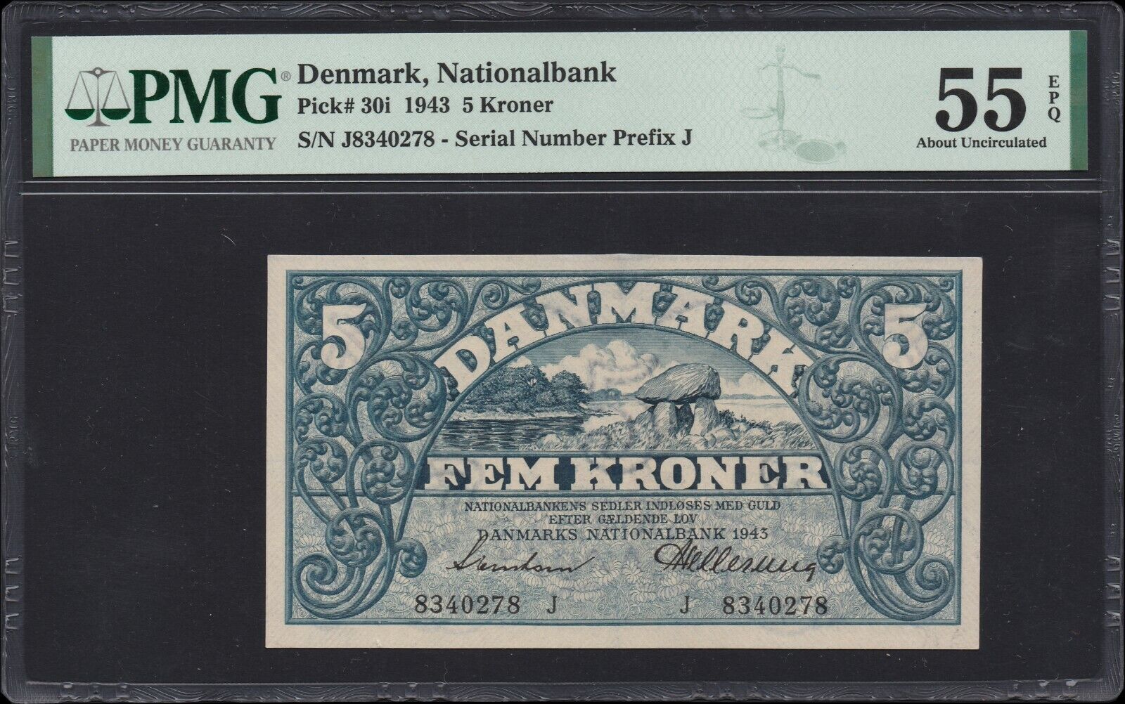 DANEMARK - DENMARK - 5 Kroner 1943 P.30i PMG AU 55 EPQ / SPL