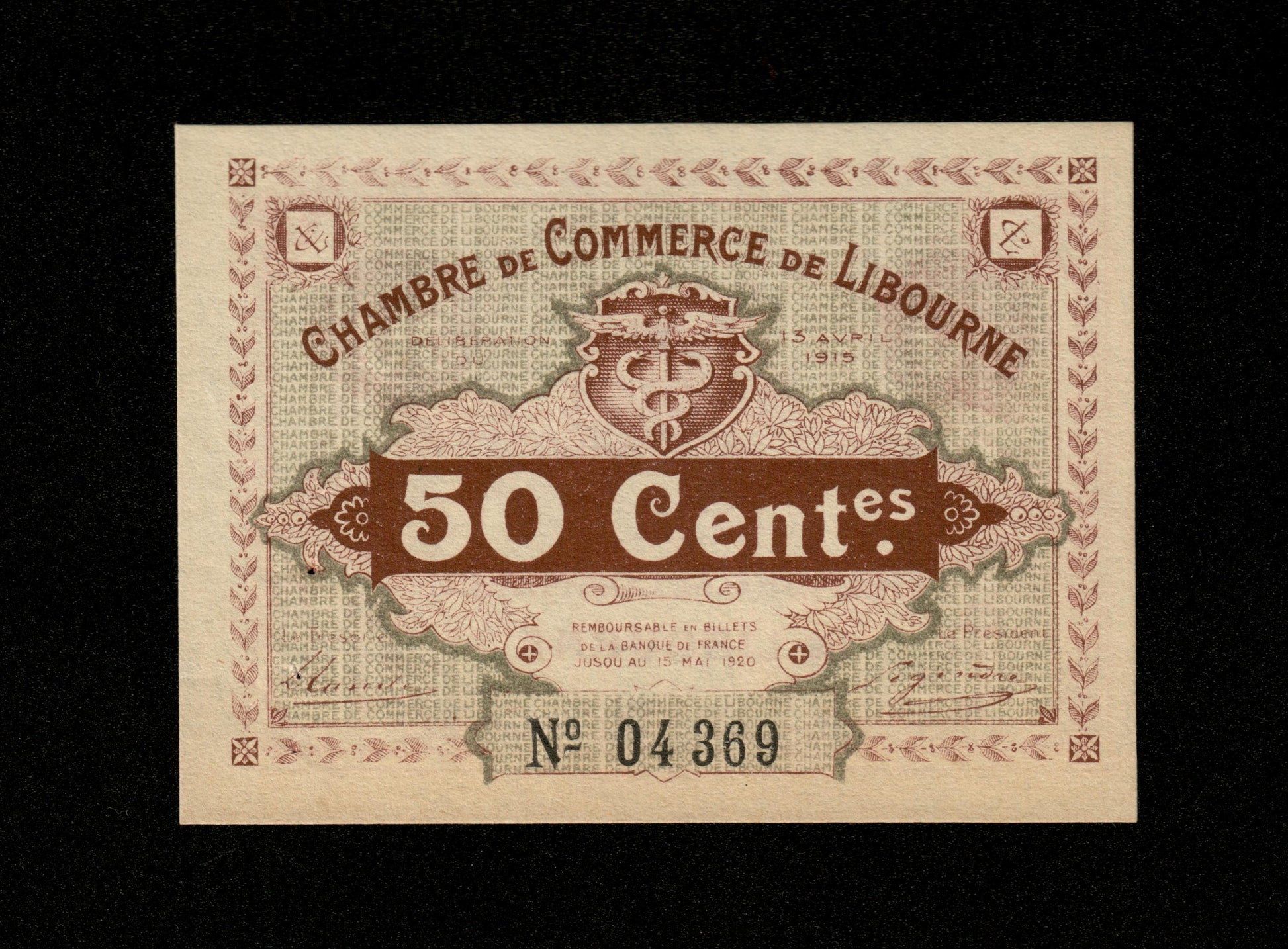FRANCE - Chambre de Commerce de Libourne 50 Centimes 1915 JP.72.01 SPL / AU