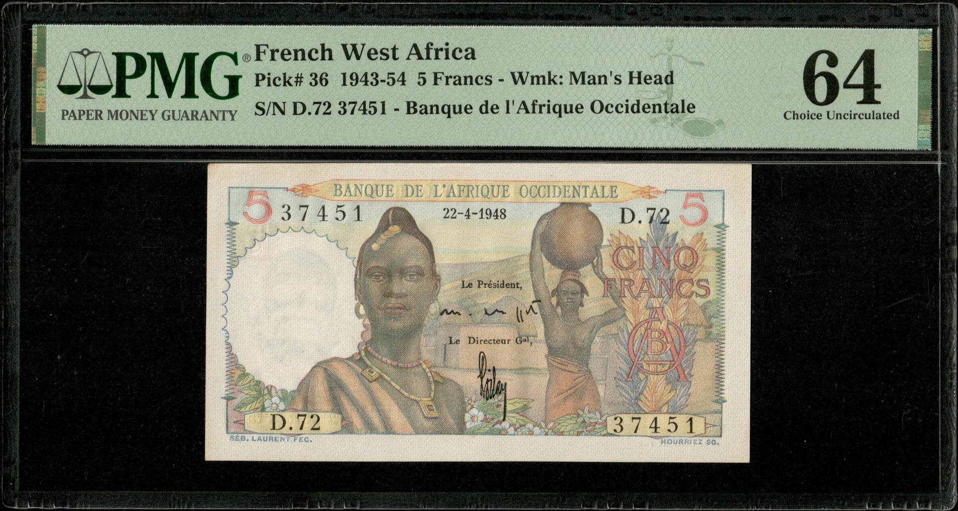 FRENCH WEST AFRICA, Afrique Occidentale - 5 Francs 1948 Pick 36 PMG Choice Unc 64