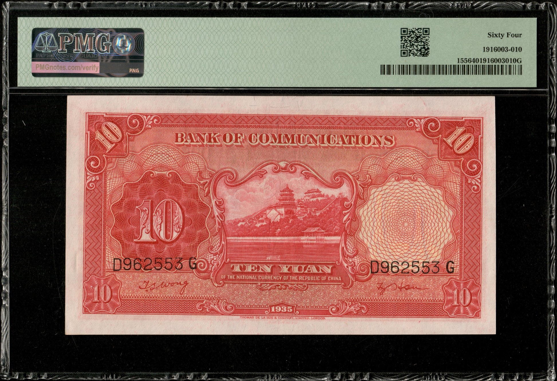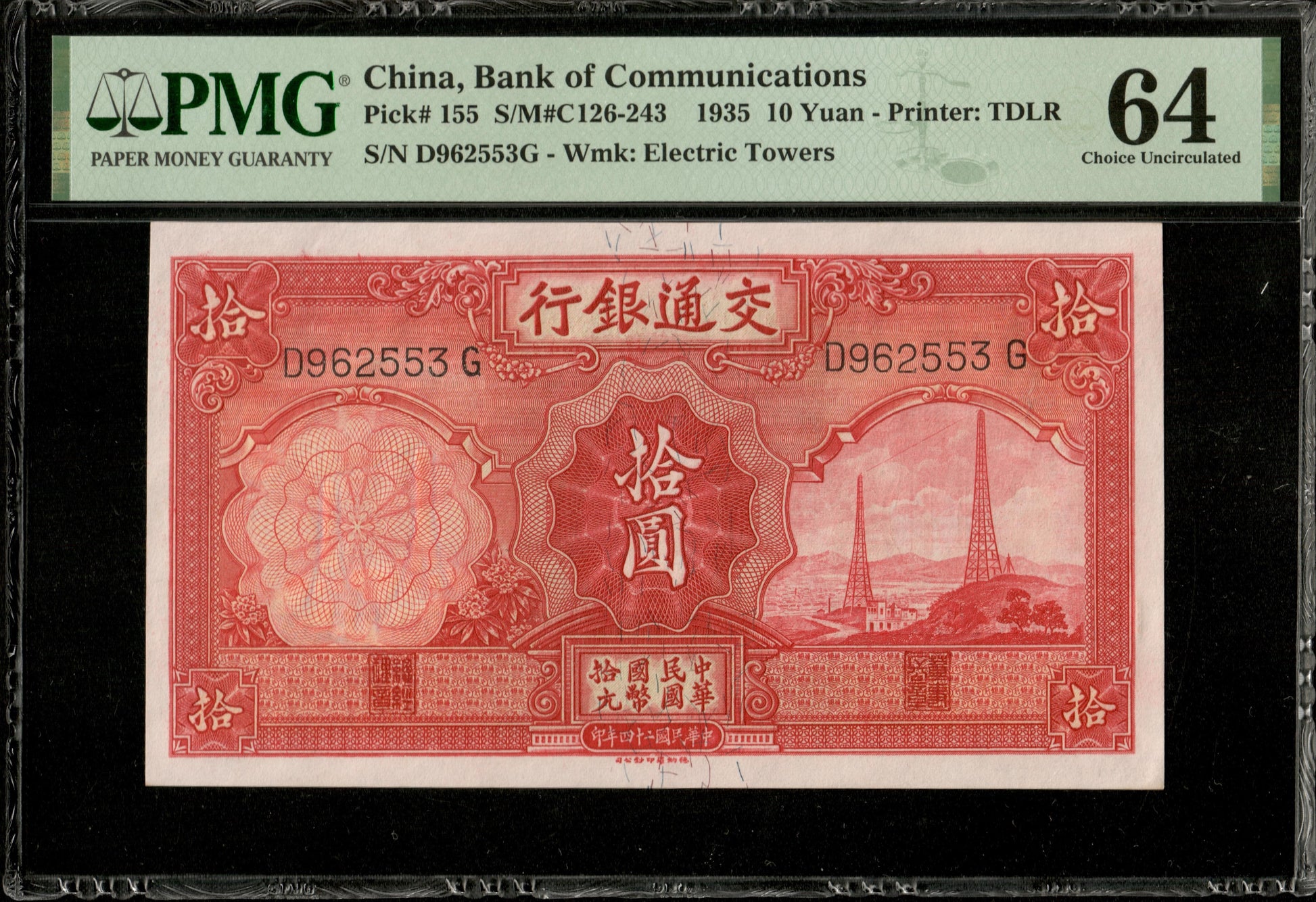 CHINE - CHINA - Bank of Communications, 10 Yuan 1935 P.155 NEUF / PMG 64