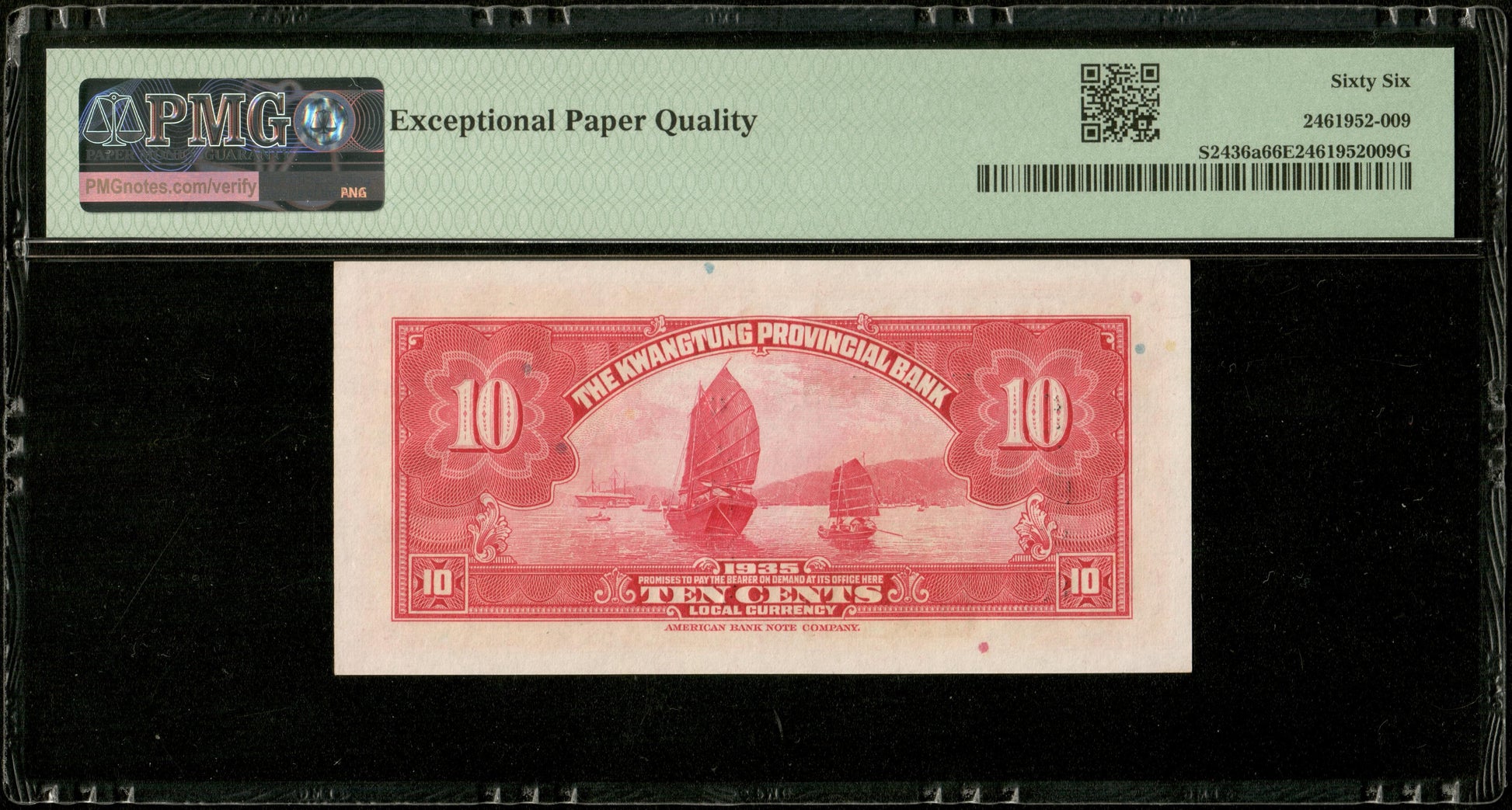CHINE - Kwangtung Provincial Bank, 10 Cents 1935 Pick S2436a NEUF / PMG Gem Unc 66 EPQ