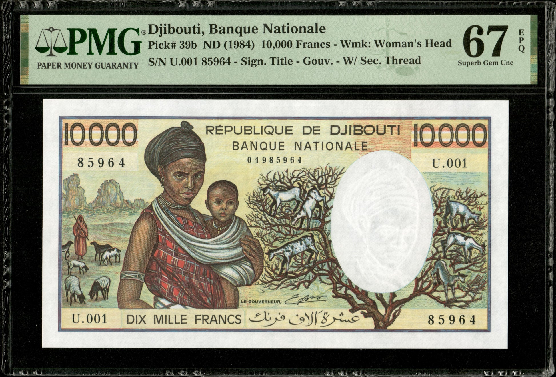 DJIBOUTI - 10000 Francs (1984) P.39b NEUF / PMG Superb Gem Unc 67 EPQ