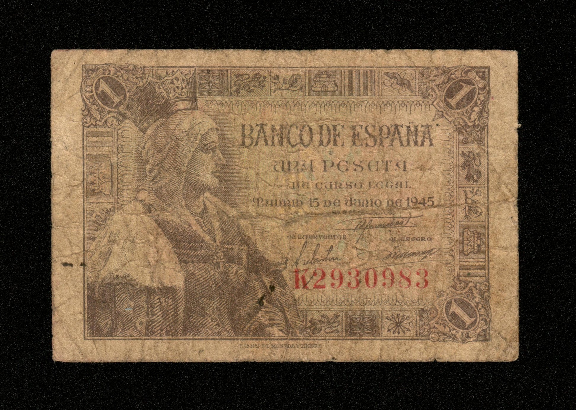 ESPAGNE - SPAIN - 1 Peseta 1945 Pick 128 B / Good