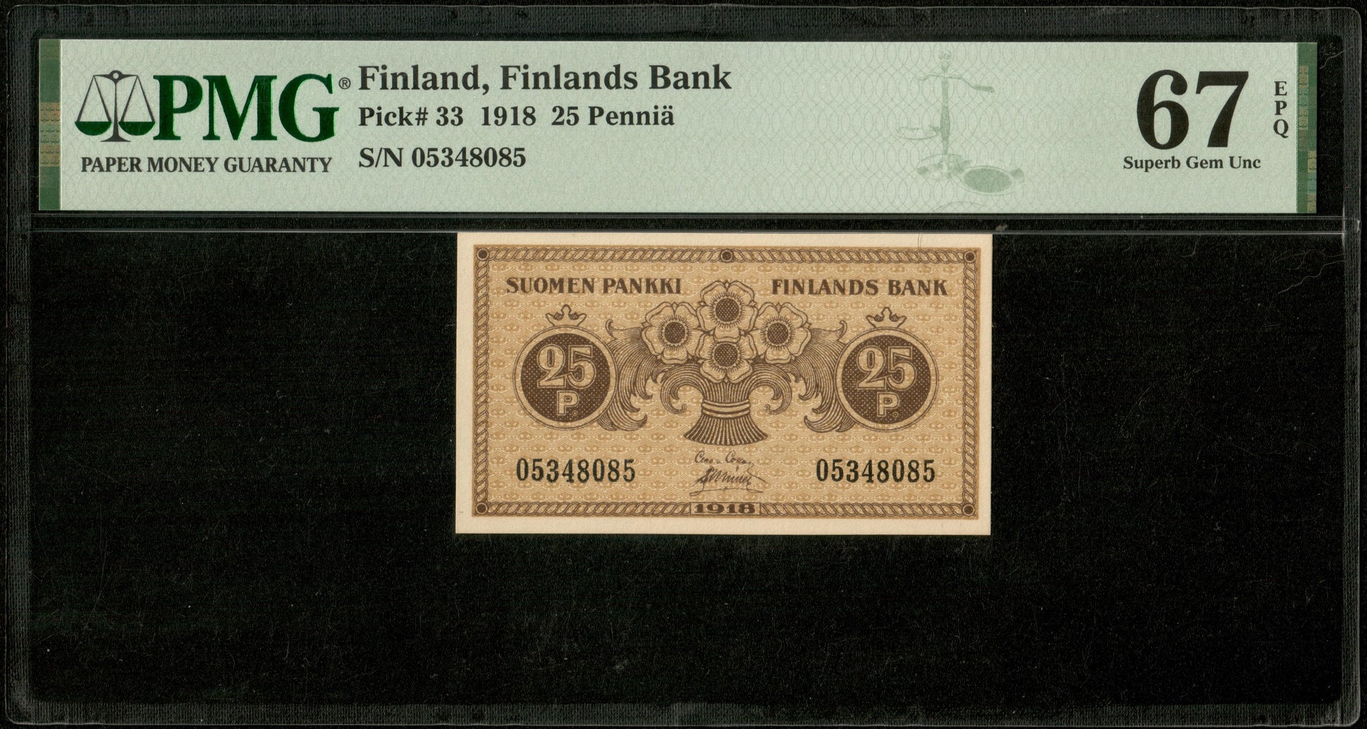 FINLANDE - FINLAND - 25 Pennia 1918 Pick 33 PMG Superb Gem Unc 67 EPQ : TOP POP (1/4)