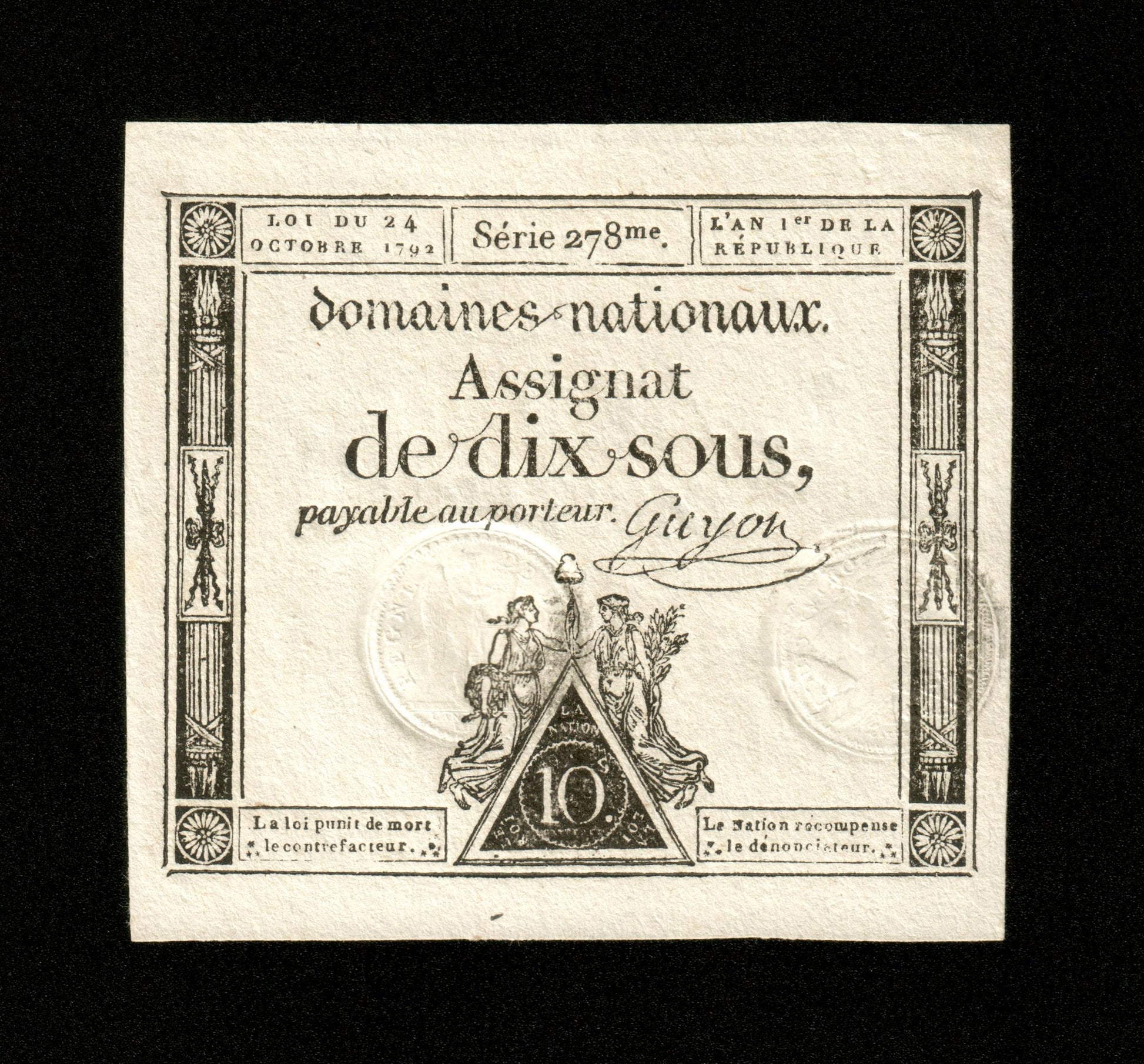 FRANCE - Assignat, 10 Sous 24 Octobre 1792 Ass.34a, Pick A64a SPL+ / AU+