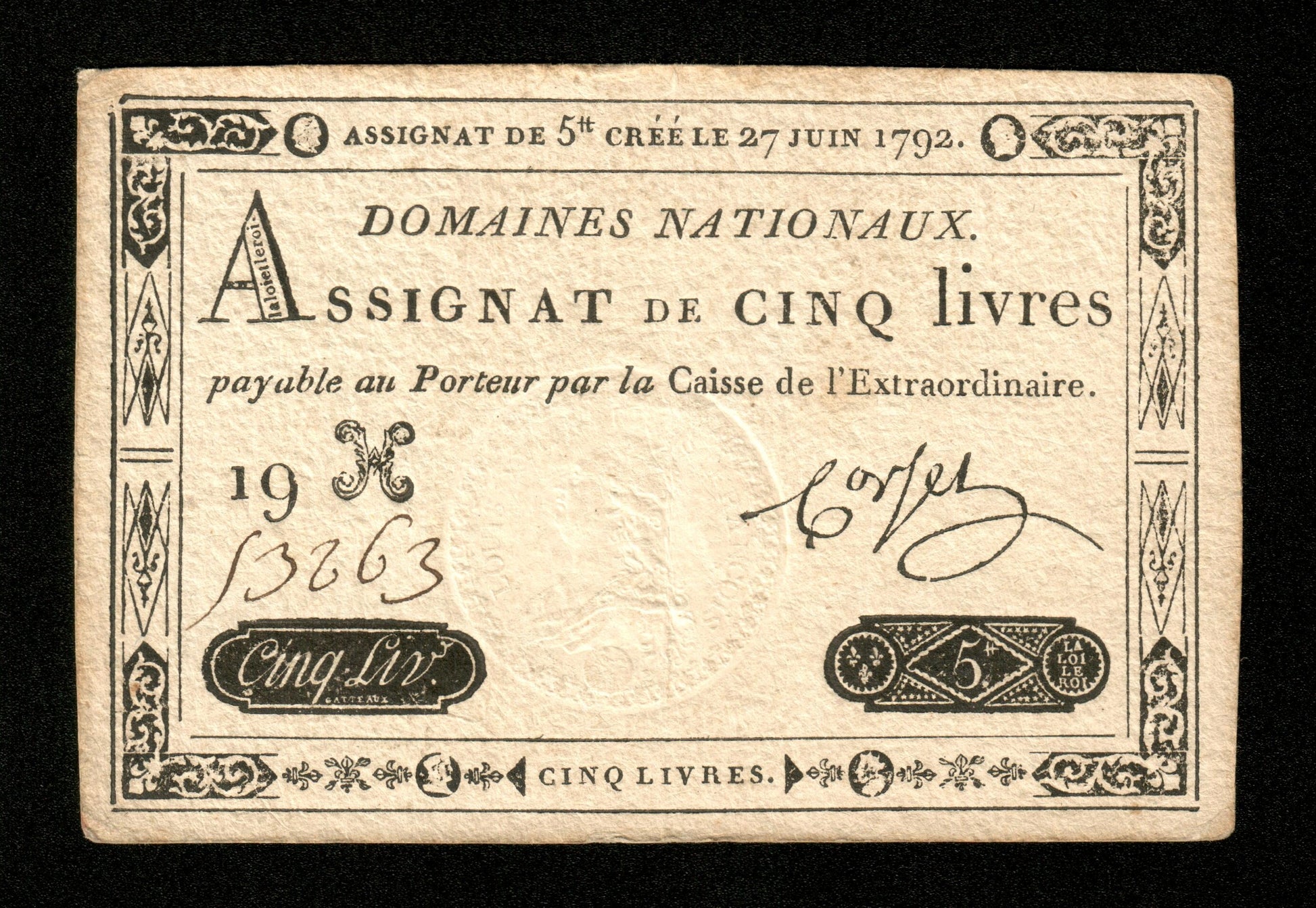 FRANCE - Assignat, 5 Livres 27 Juin 1792 Ass.30a, Pick A60 Sign. Corsel TTB / VF