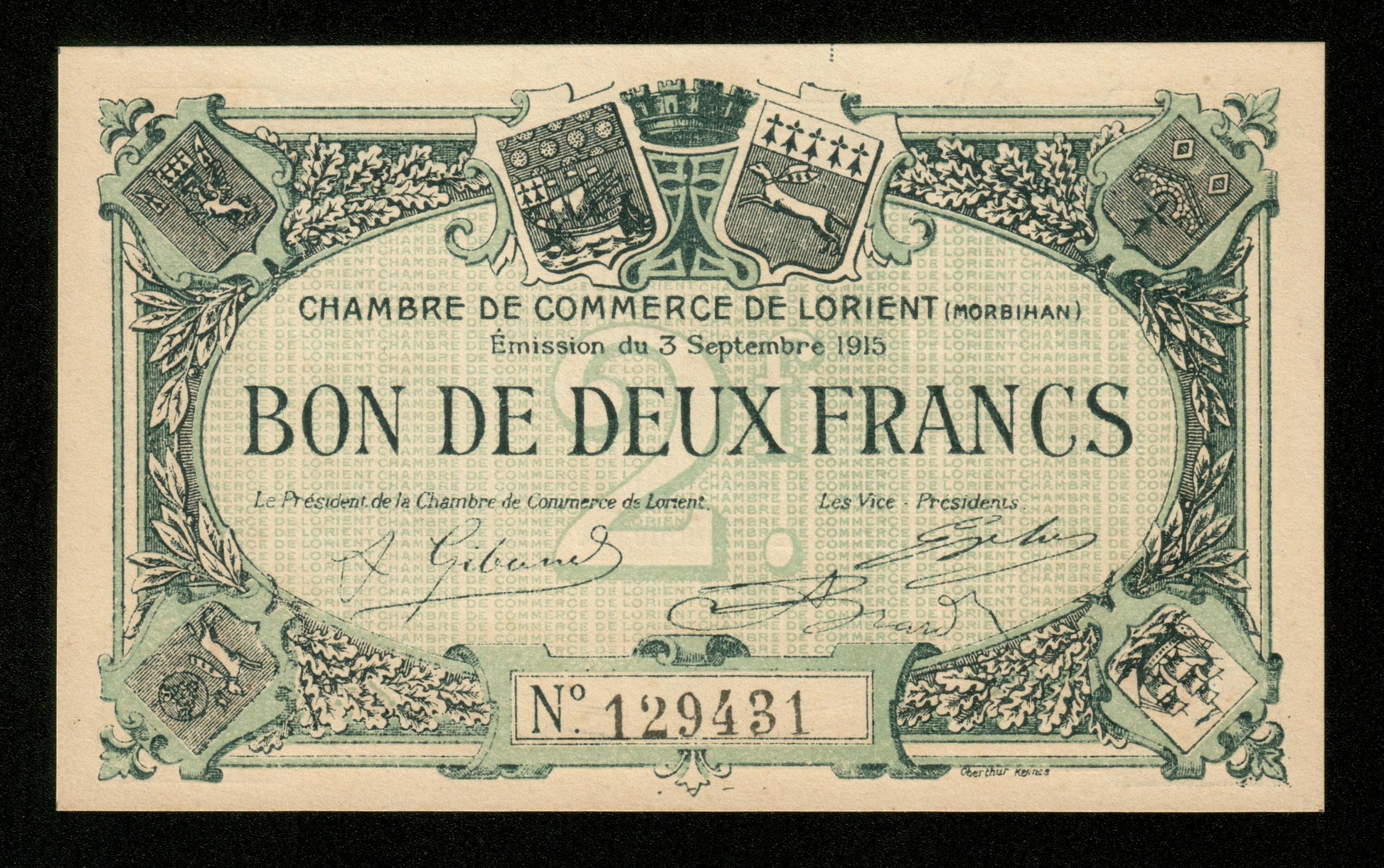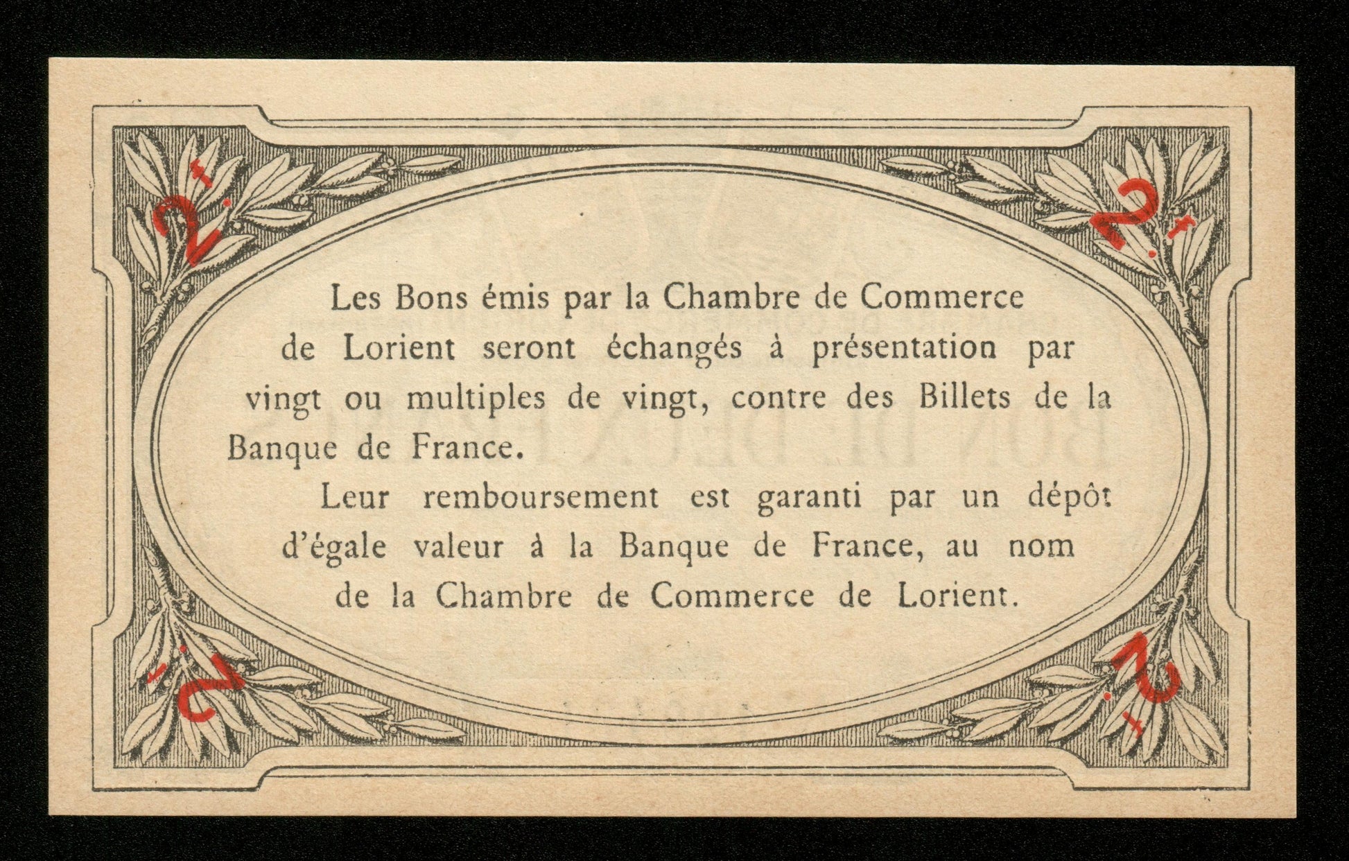 FRANCE - Chambre de Commerce de Lorient, 2 Francs 1915 JP.75.11 NEUF / UNC